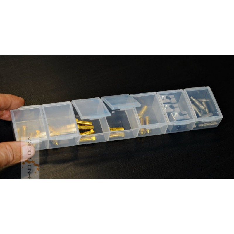 organizátor 3D dielov, organizátor trysiek 3D tlačiarne 7 sekciíTento výrobok sa používa na ukladanie malých smd dielov alebo malých súčiastok. Pohodlne sa dá podpísať značkovačom.
